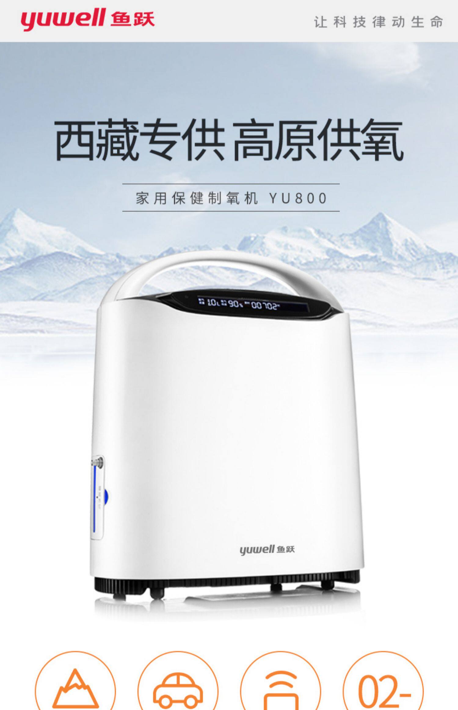 鱼跃 Плато кислород -обработка транспортных средств Тип 1L Портативная тибетская тибетская специальная кислородная машина на открытом воздухе поглощение кислорода Yu800
