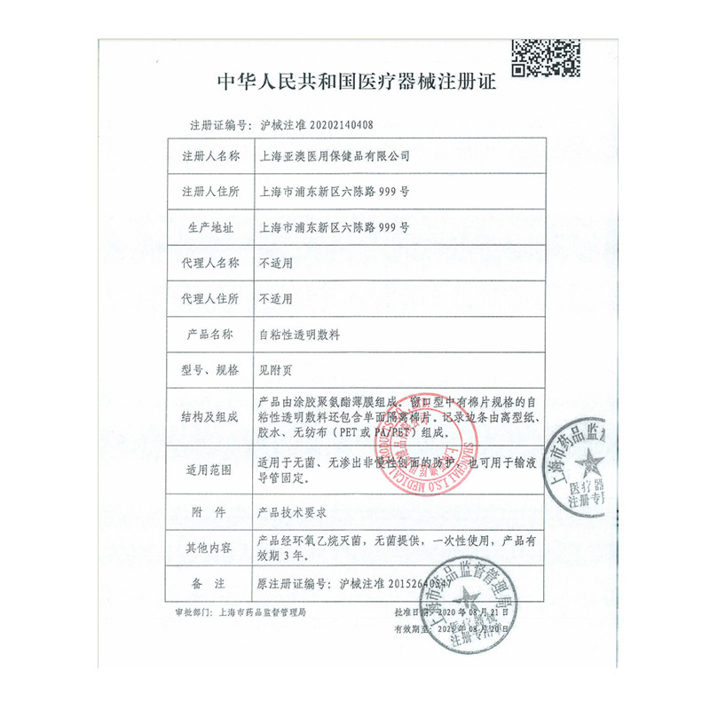Азия и Австралия PICC Self -Viscosity Transparent Prageming Range Защита квартиры. Фиксированная пленка асептической заправки 1008a