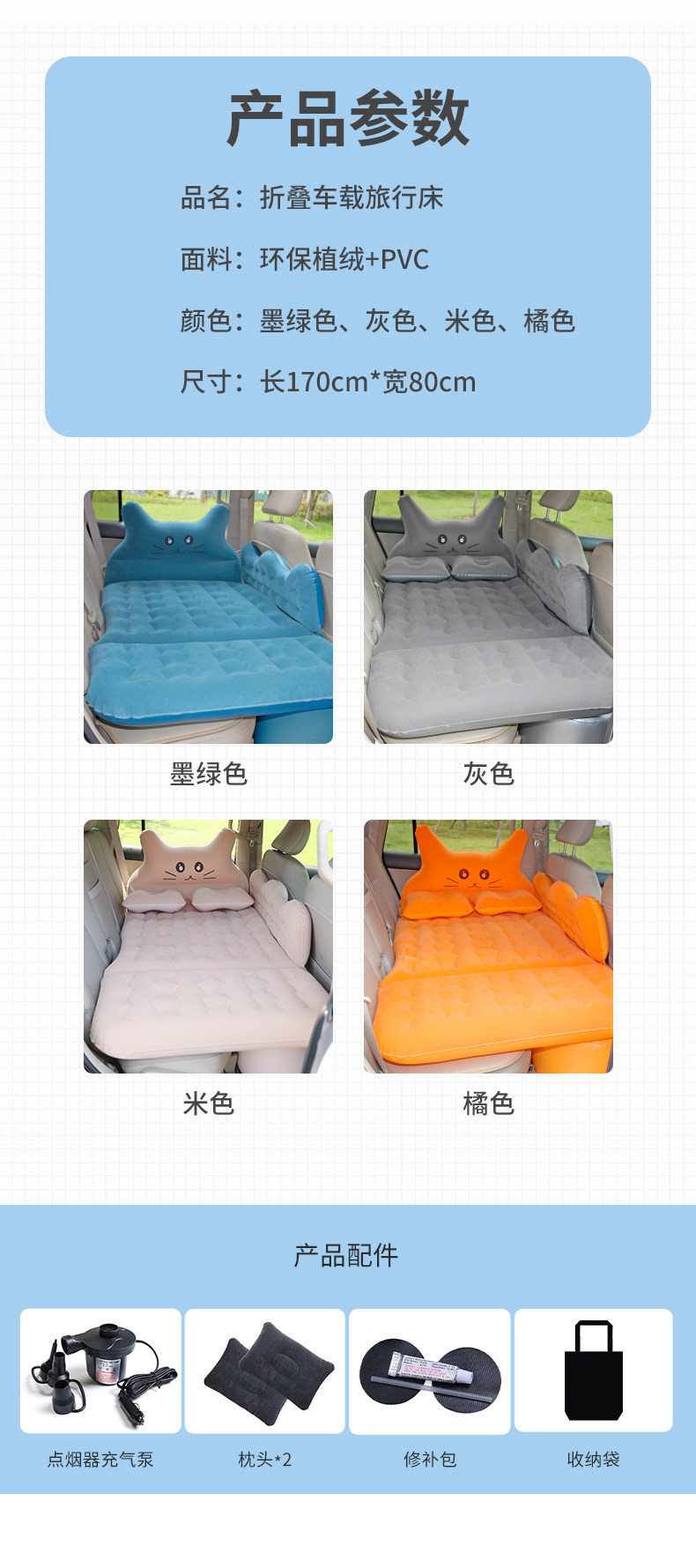 Надувной кушон для авто для путешествий, складной матрас для сна