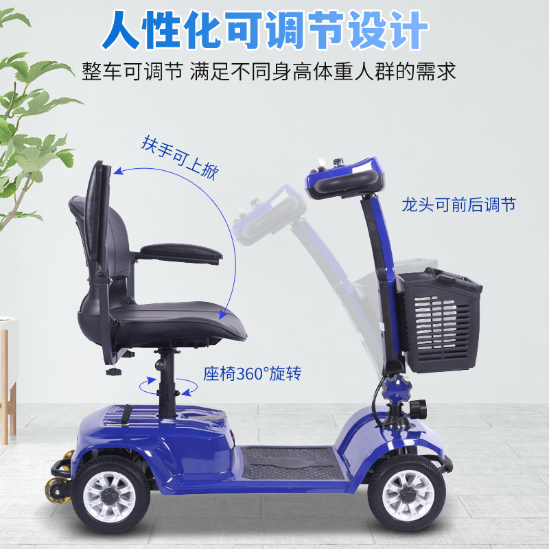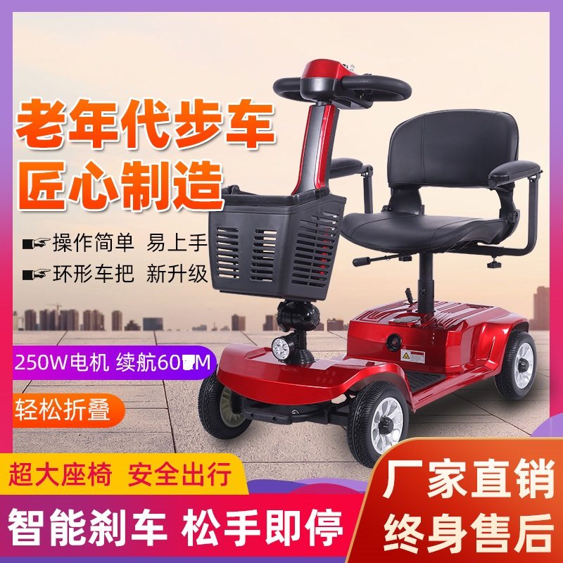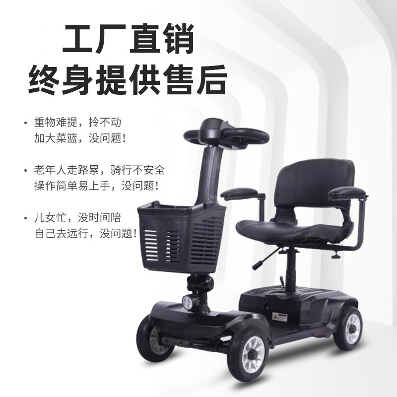 Черные электрические ходунки для пожилых людей на четырех колесах, мопед, складной электромобиль