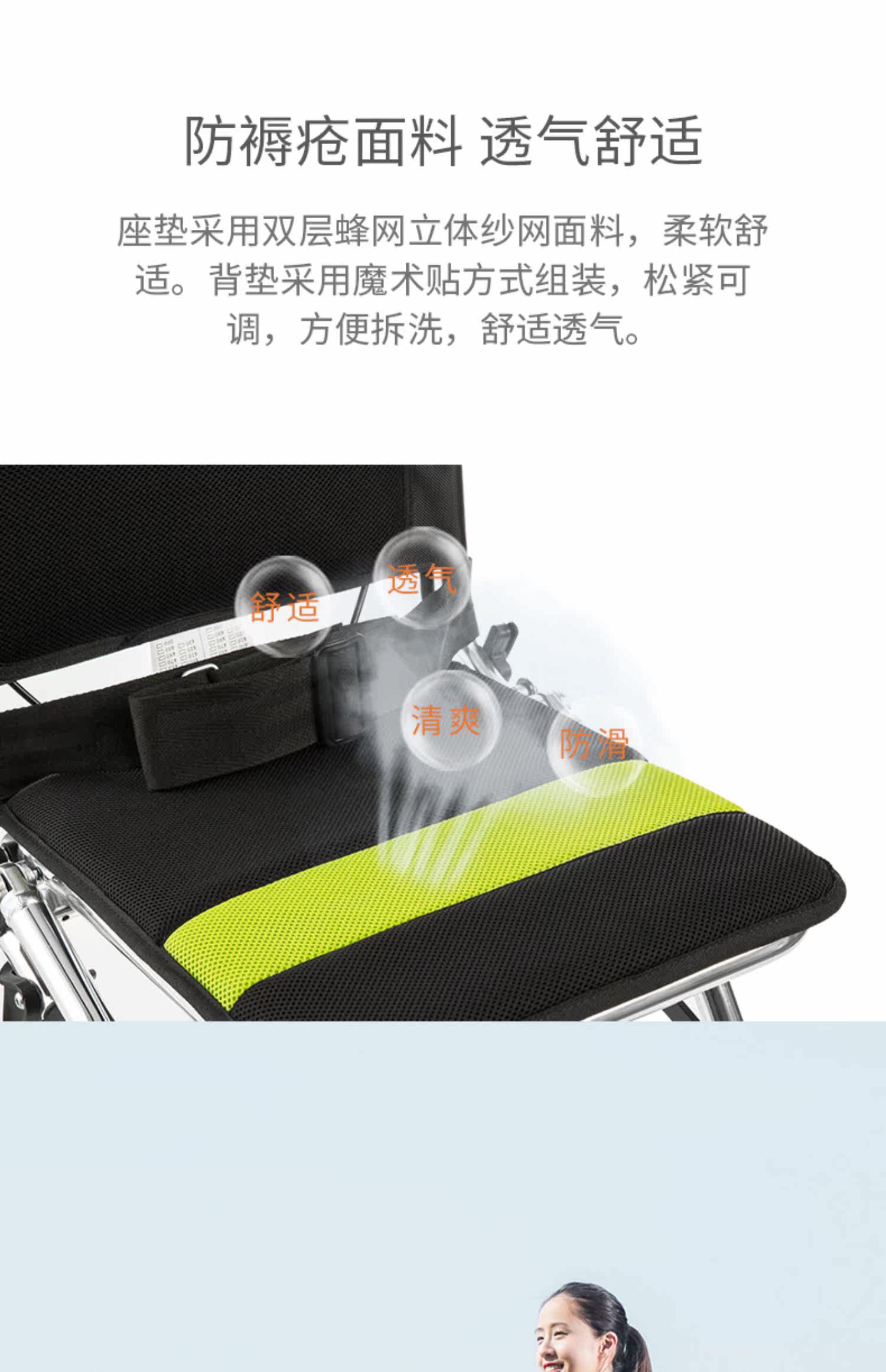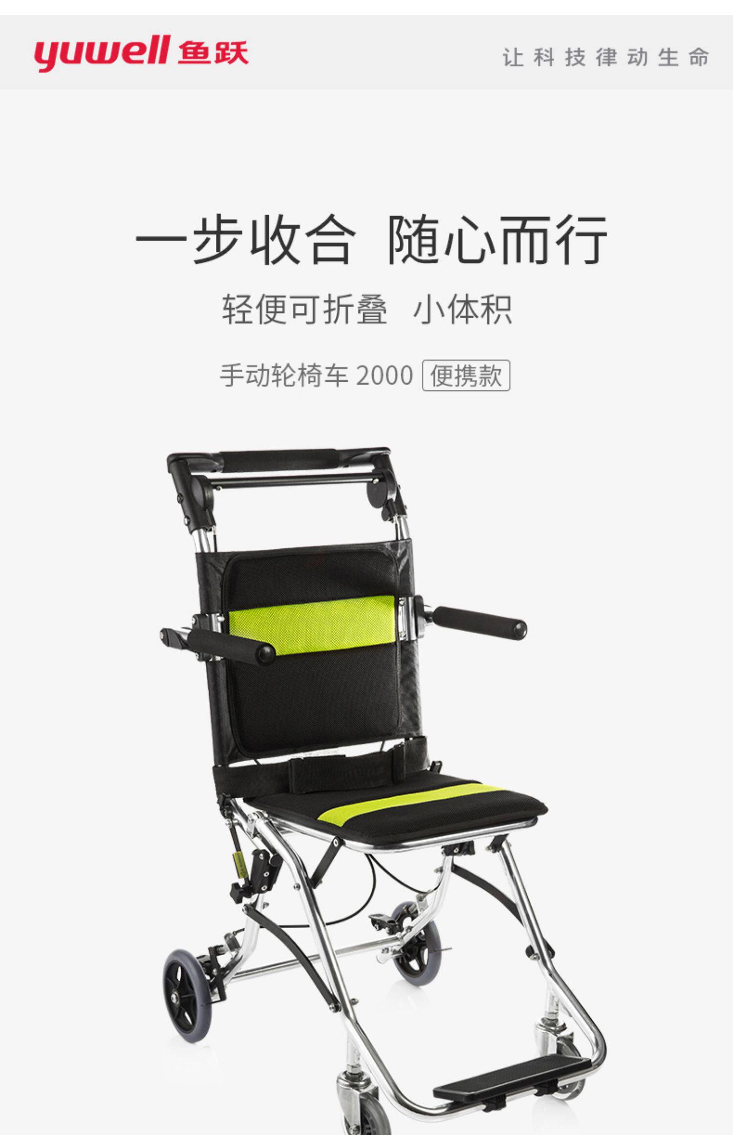 鱼跃 Инвалидная коляска 2000 Старик слегка складывает портативный ультра -легкий вес и может быть сдан на инвалидной коляске.