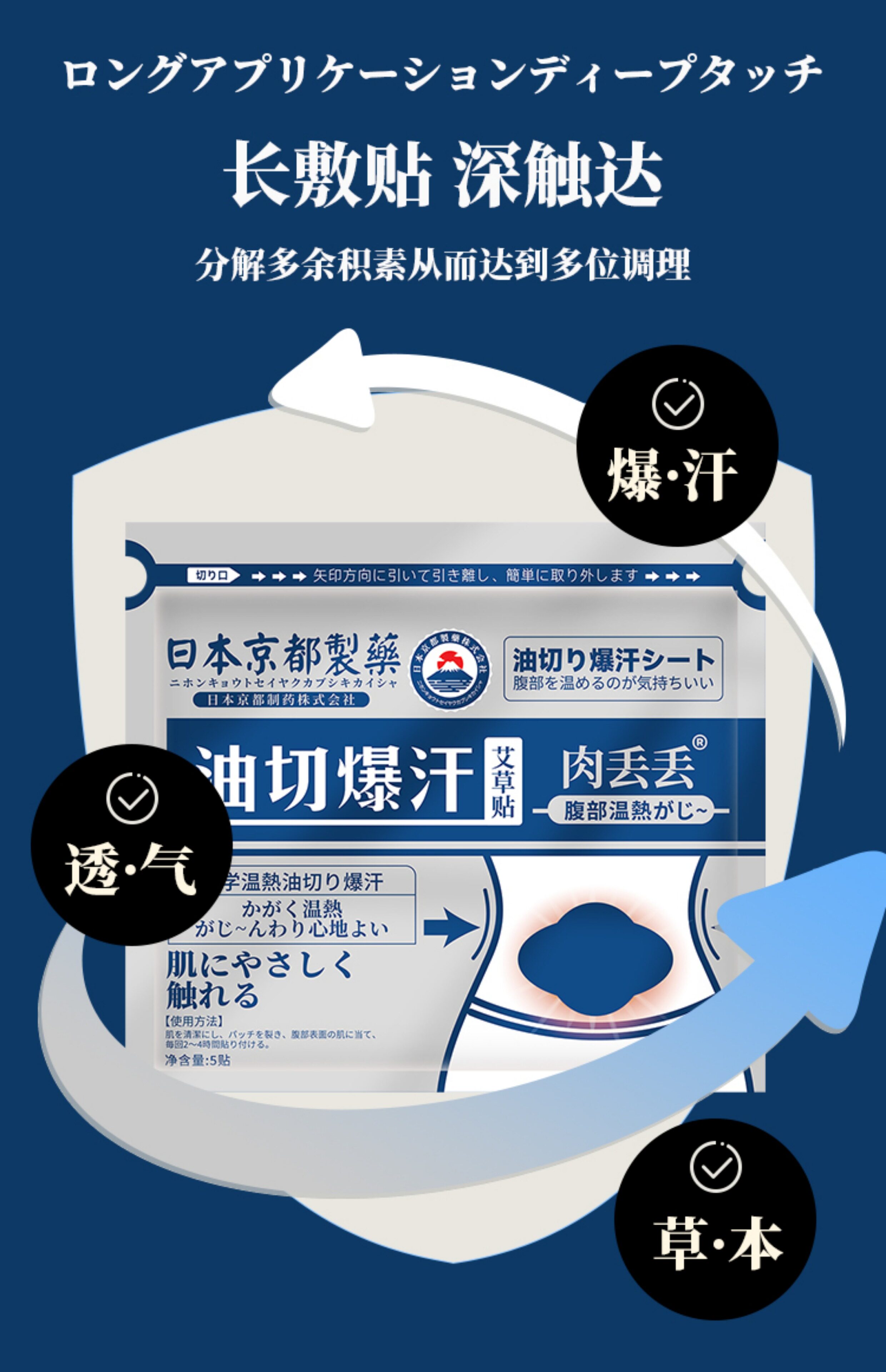 Японские маслопоглощающие натуральные вкладыши прокладки от пота для подмышек для похудения с горькой полынью, наклейка на талию