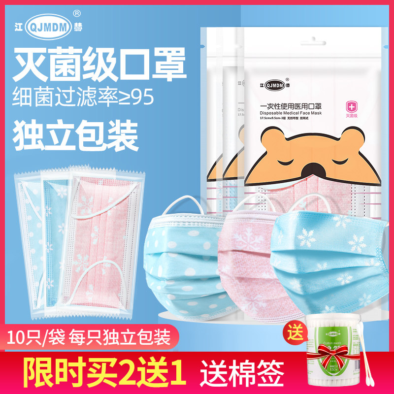 Цзян, он использует медицинские маски одновременно и упаковал 10 независимо/мешков с розовым синим.