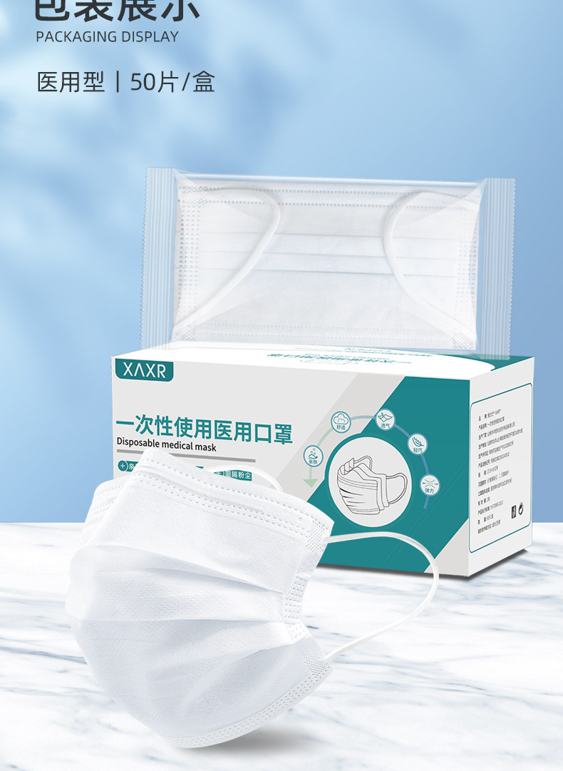 Белая одноразовая высококачественная медицинская маска подходит для мужчин и женщин