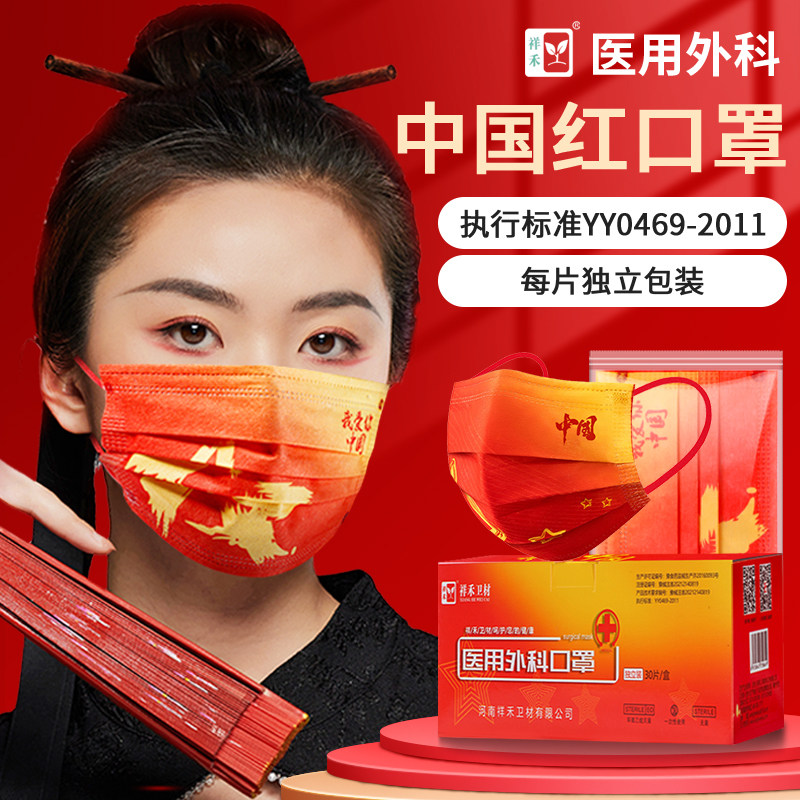 Красная одноразовая модная медицинская маска, китайский стиль, коллекция 2021