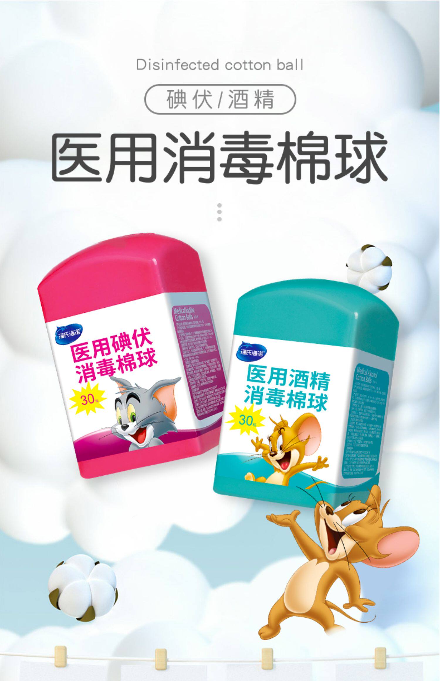 海氏海诺 Антибактериальные хлопковые шарики, дезинфицирующее средство, хлопковый пинцет