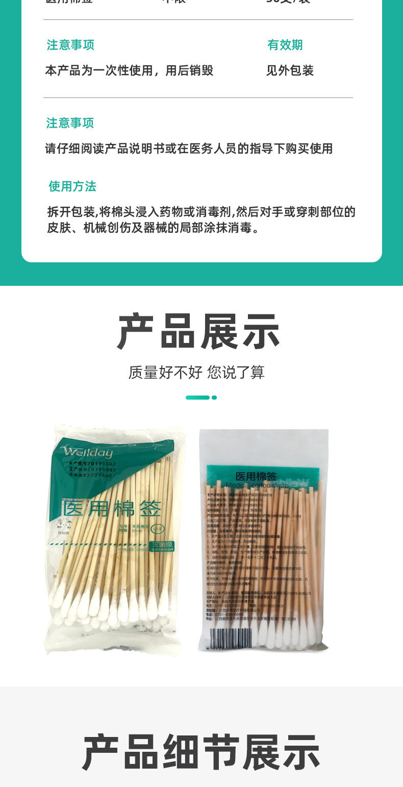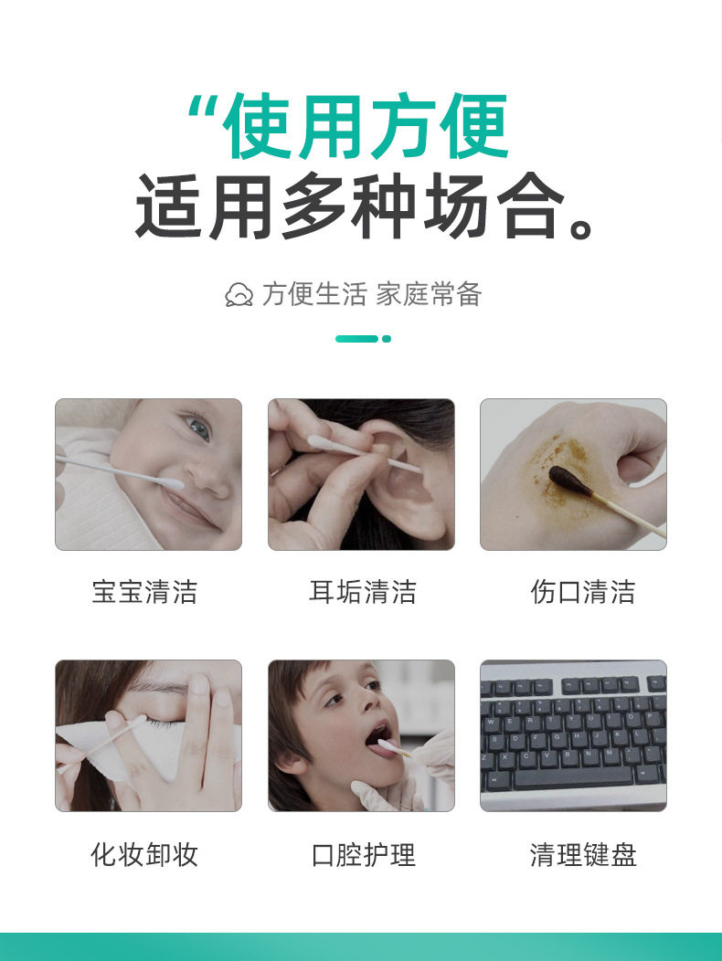 Одноразовые антибактериальные детские хлопковые ватные палочки для домашнего использования