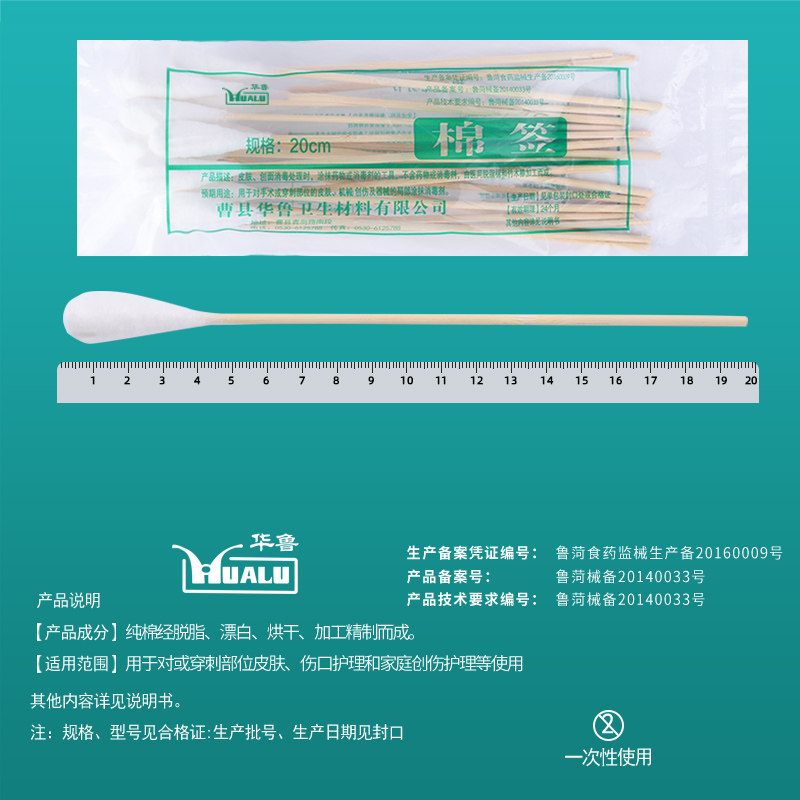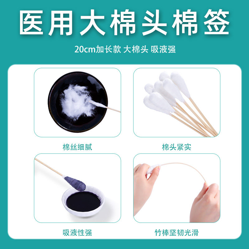 Одноразовые длинные хлопковые детские антибактериальные ватные палочки, 20см