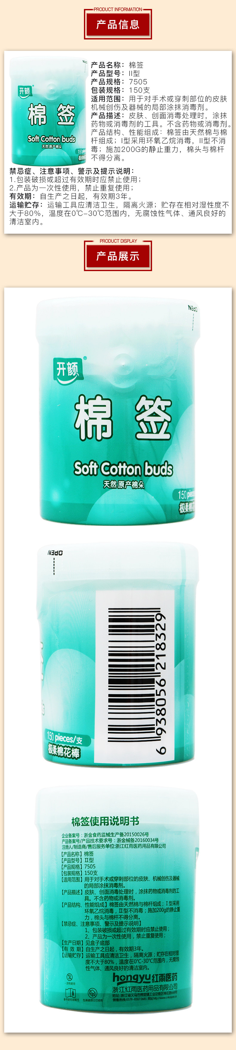 Хлопковые одноразовые антибактериальные ватные палочки
