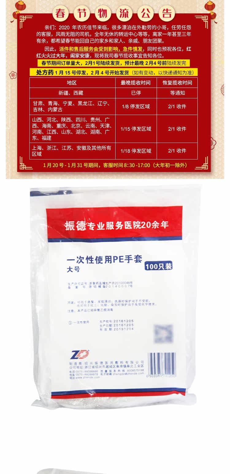 Zhende использует перчатки PE (L) 100 Домашние медицинские продукты питания, санитария к питанию QH