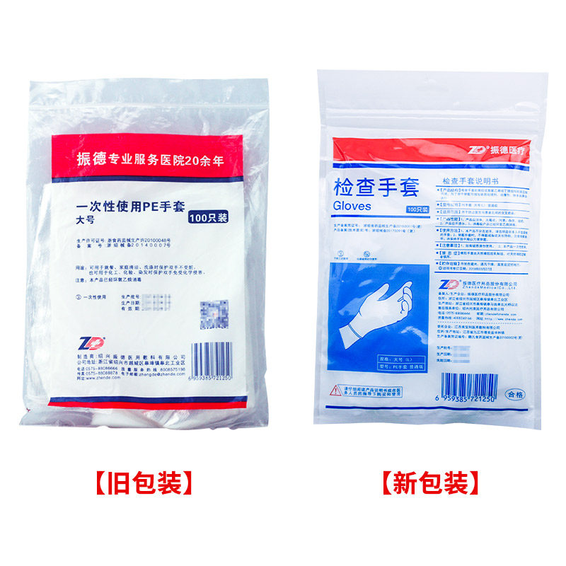 Zhende использует PE Gloves 100 большие дезинфекционные перчатки домохозяйственные тестовые красители тонкие пленочные перчатки GZ