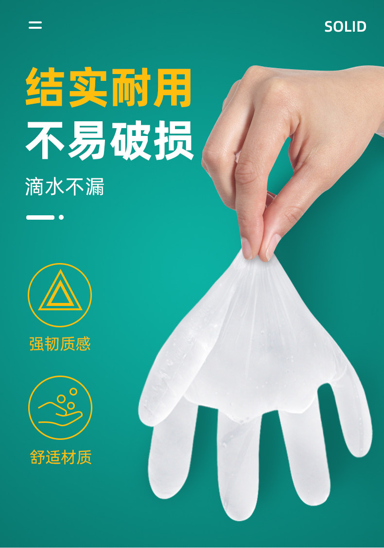 海氏海诺 Проверьте перчаточные одноразовые одноразовые медицинские утолщенные PE Тонкую пленку Прозрачную красоту, еду, дом питания
