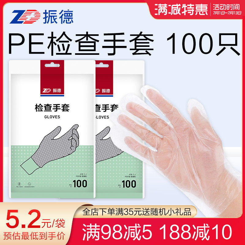 Ченде, не прозрачные пленки, прозрачные перчатки 1 Сумка 100 Сумка 100 Home Health PE -чек перчатки