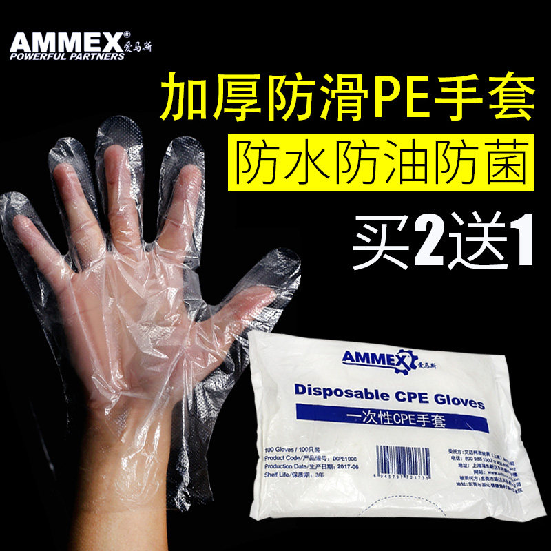 Homas Медицинские одноразовые перчатки PE Медицинское обследование прозрачная толстая пищевая работа по домашнему дому.