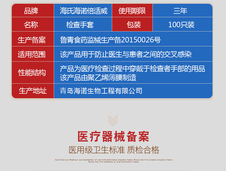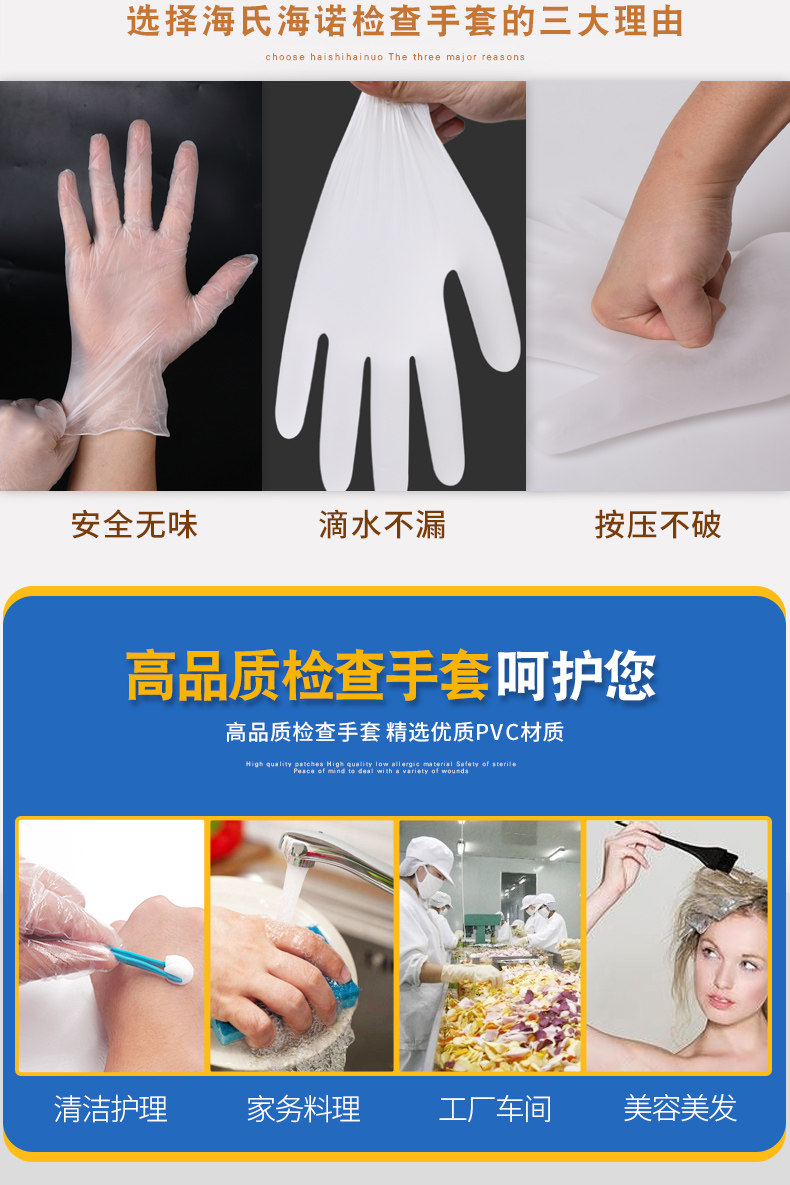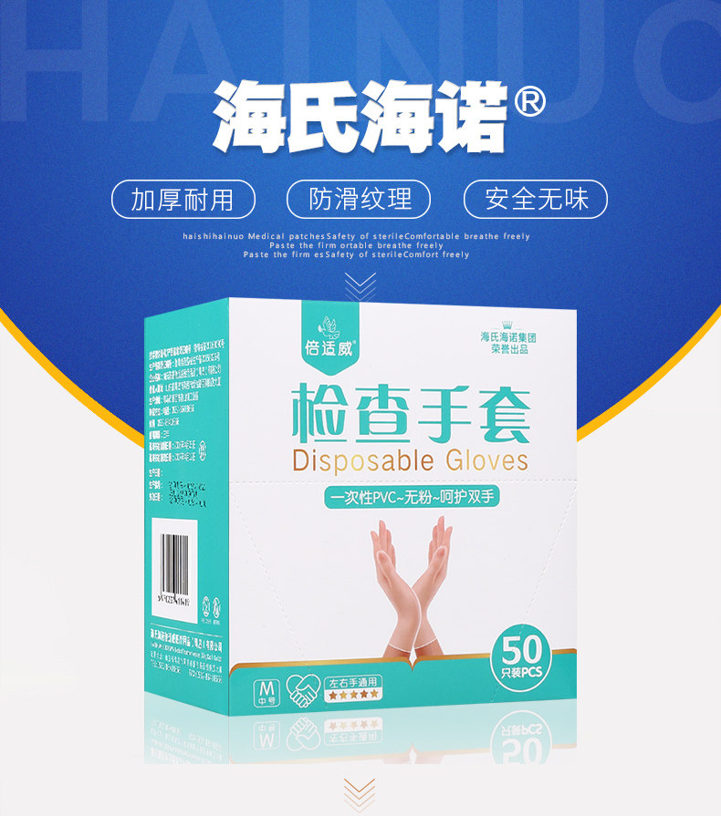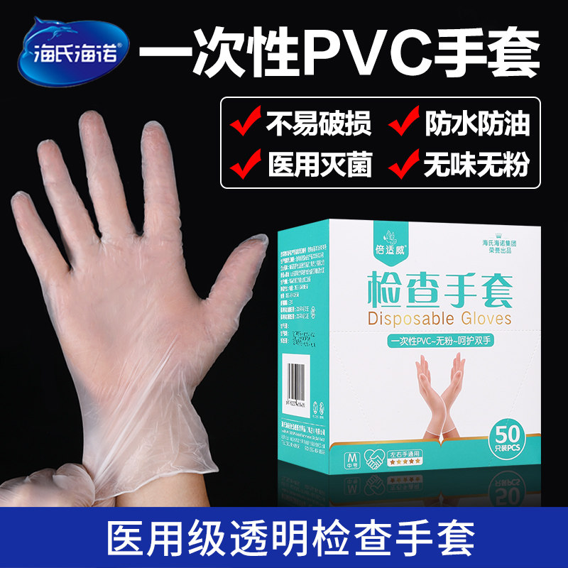 海氏海诺 Одноразовые пластиковые прозрачные резиновые перчатки из ПВХ