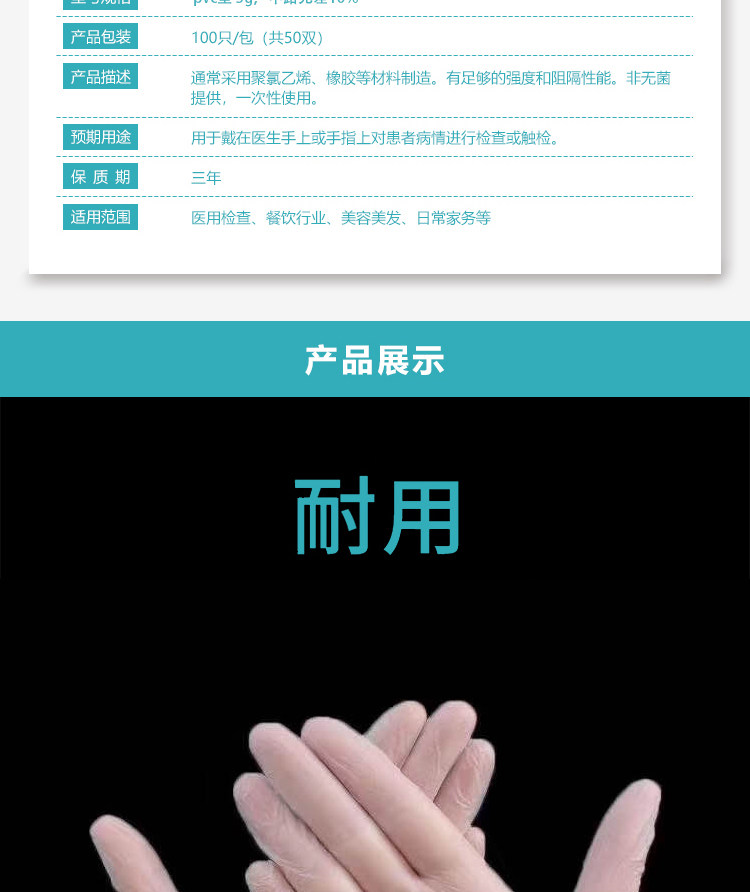 海氏海诺 Одноразовые прозрачные перчатки из ПВХ