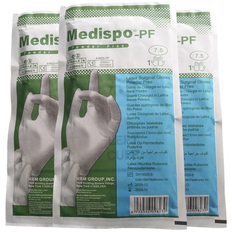 [Spot Free Dropping] Медицинское обследование перчаток одноразового хирургического резинового резины.