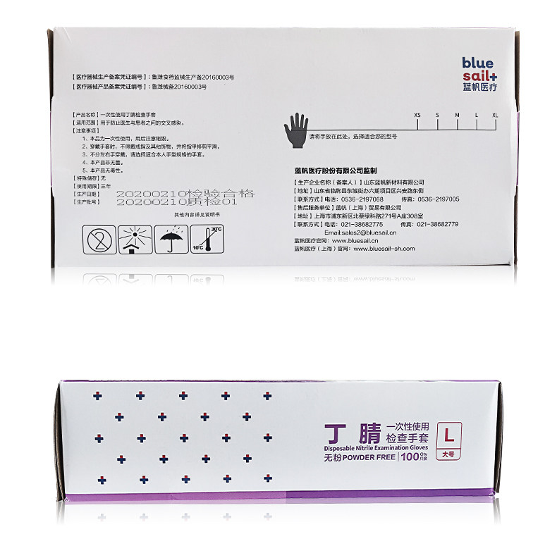 蓝帆医疗 Одноразовые медицинские перчатки, неупонентная износ -устойчивые к износу.