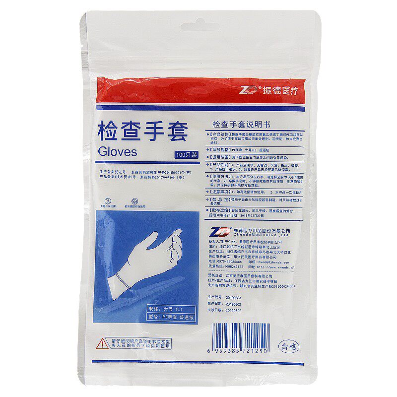 Zhende проверяет перчатки одноразовые перчатки PE ежедневные сантехнические перчатки, чтобы предотвратить перекрестную инфекцию 100/сумки