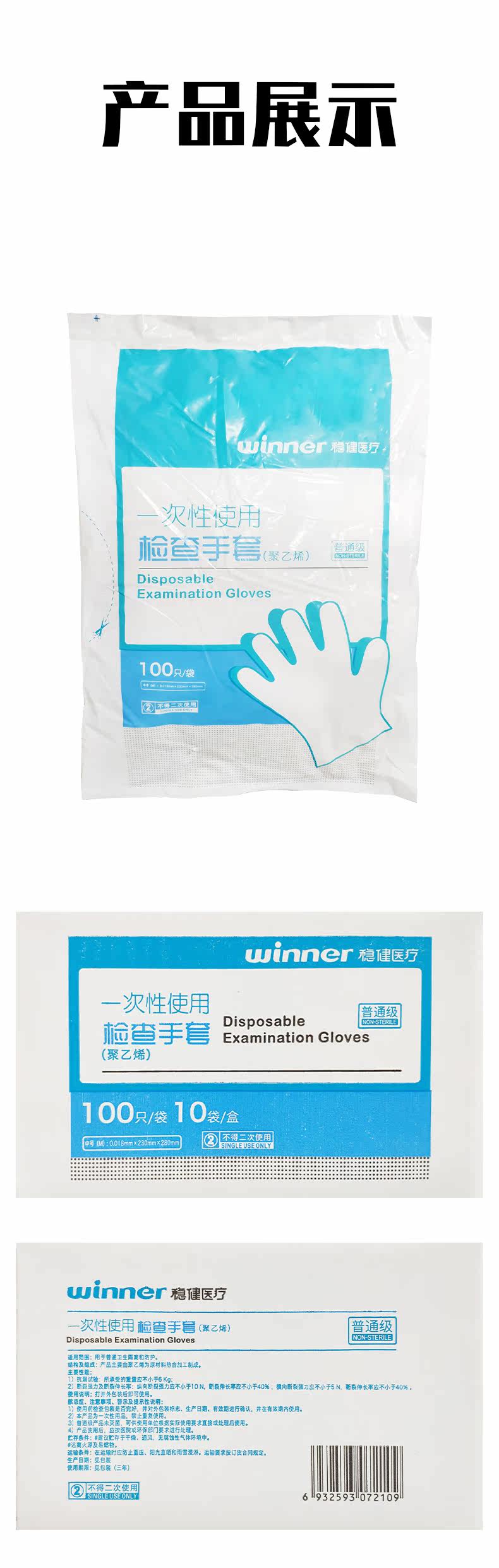 Стабильное медицинское использование медицинских инспекционных перчаток Прозрачная домашняя не -скользящая перчатка 100