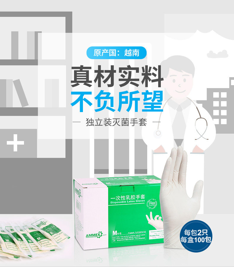 200 Hemas Медицинские одноразовые стерильные резиновые перчатки без стерилизации порошковой стерилизации Медицинская хирургическая экспертиза ПВХ нарезанный кубиками