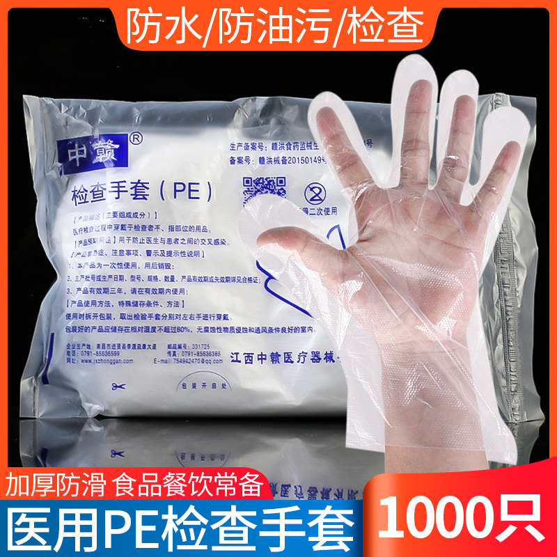 1000!Одноразовые перчатки PE Медицинский осмотр для утолщенной прозрачной пластиковой пленки домохозяйства по домохоше