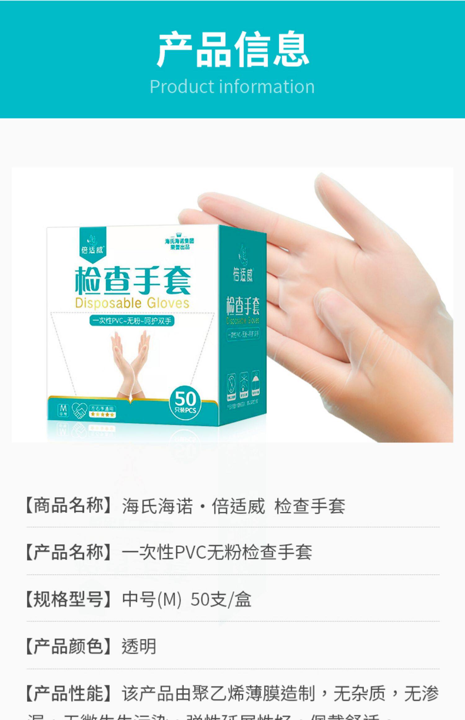 海氏海诺 Перчатки из ПВХ, одноразовая пластиковая прозрачная униформа врача