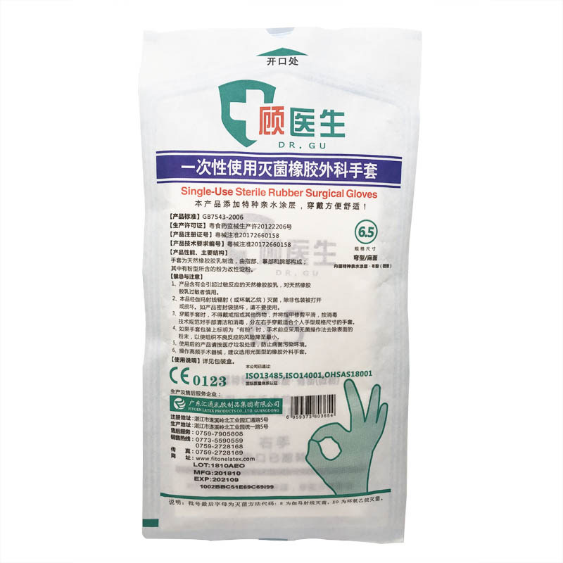顾医生 Используйте стерилизованные резиновые хирургические перчатки за один раз 6,5 ярдов, 7 ярдов, 7,5 -окрашенная поверхность изгиба