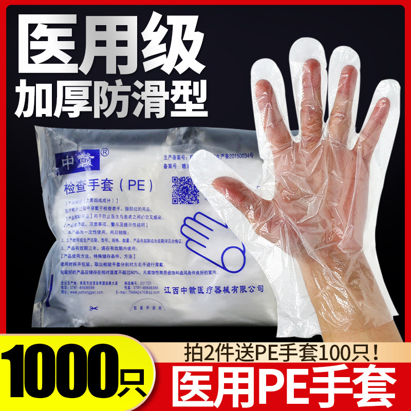1000!Медицинские инспекционные перчатки сгущенные прозрачные прозрачные пластические красоты домохозяйства домохозяйства.