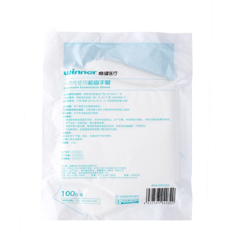 Используйте 100 инспекционных перчаток (полиэтилен) 100/сумка (уровень стерилизации) m