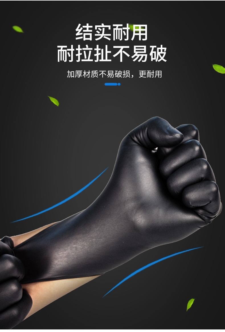 Одноразовые черные прочные перчатки