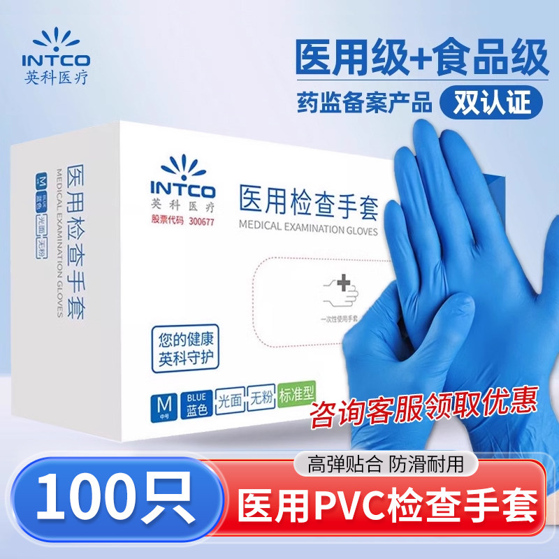 Медицинское обследование перчатки с однократным PVC -порошковым порошком защита. Пищевая эластичность синяя синяя эластичность утолщена 100
