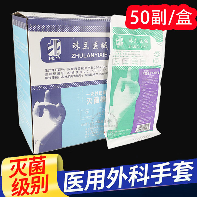 - Коробка из 50 пар [7,5 -дюймовая медицинская стерилизация резиновых хирургических перчаток]