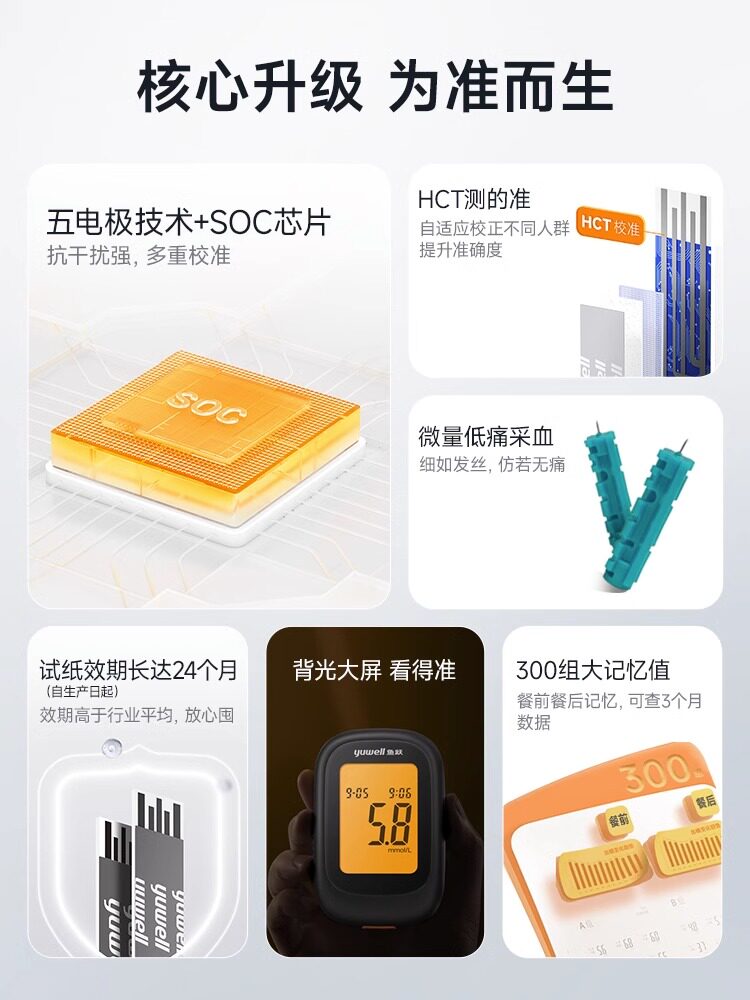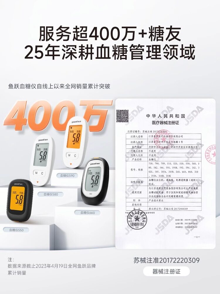 鱼跃 550 Тестер глюкозу для глюкозы в крови, бытовое измерение высокого уровня в области сахара в крови Официальный флагманский флагманский мониторинг.
