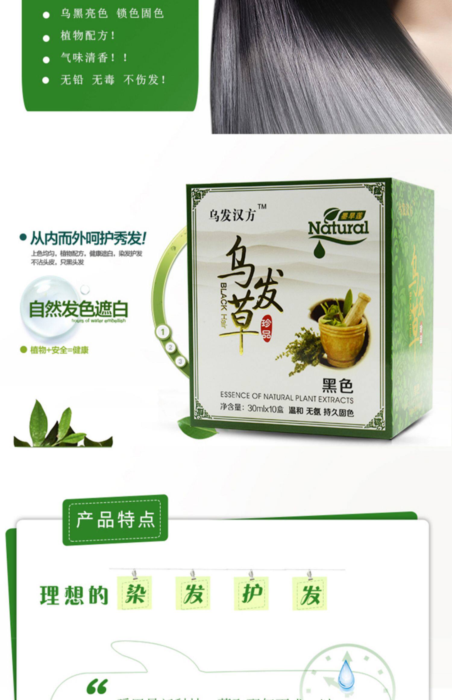 Растительный краситель, черная натуральная краска для волос подходит для седых волос, не вызывает раздражения