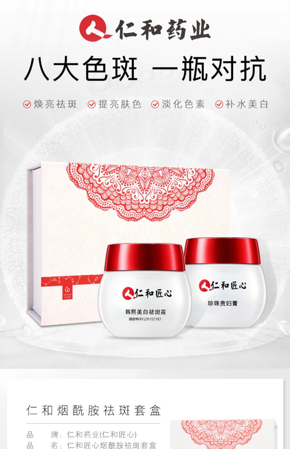 仁和 Фармацевтический флагманский магазин Официальный веб -сайт Особые изобретательные изобретательные изобретательности Han xi отбеливание благородных женщин кремо