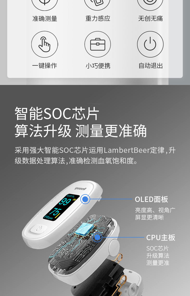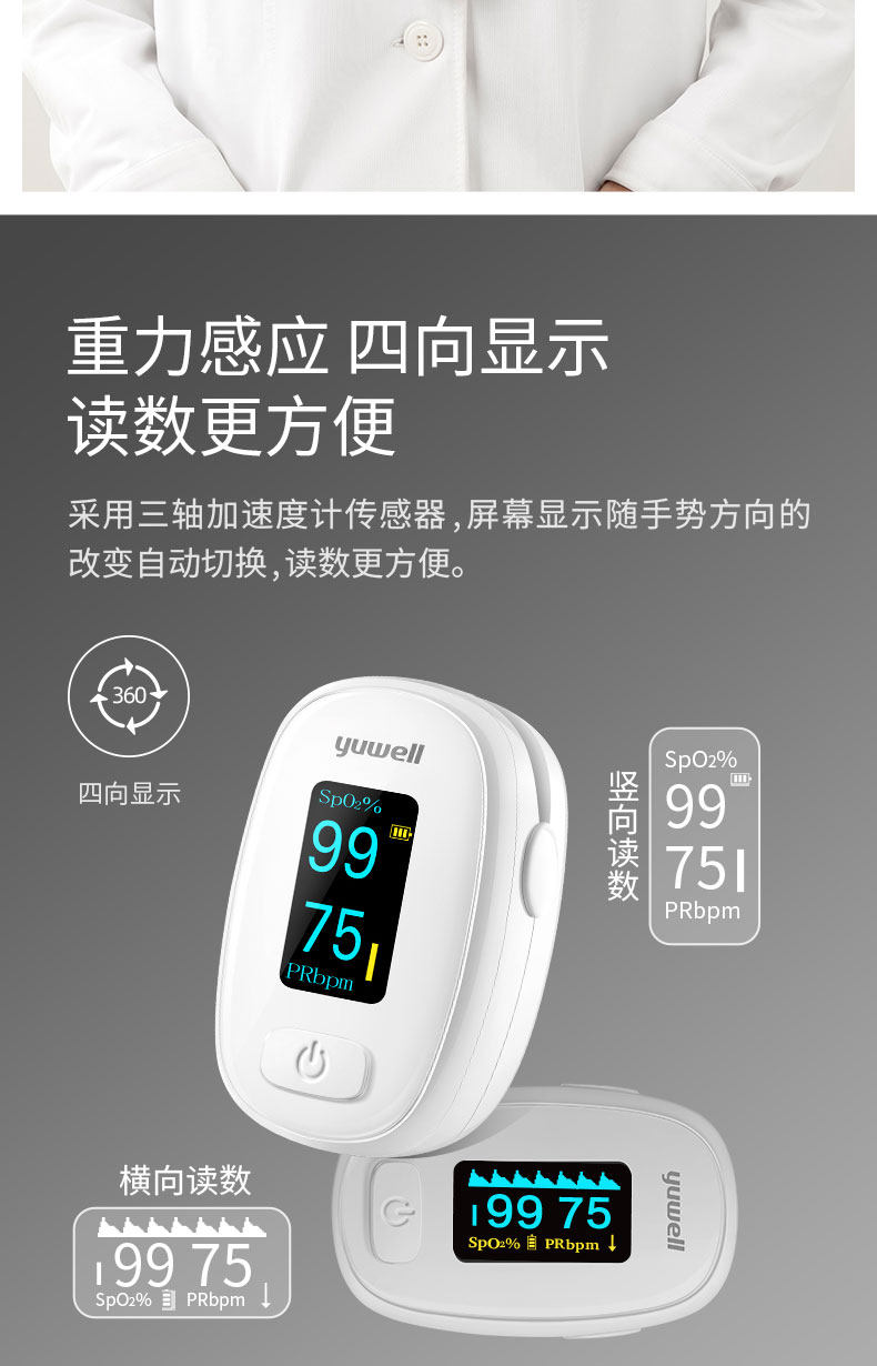 鱼跃 Кровяная кислород пальцы пальцы Медицинское кровопролитное насыщение насыщенно