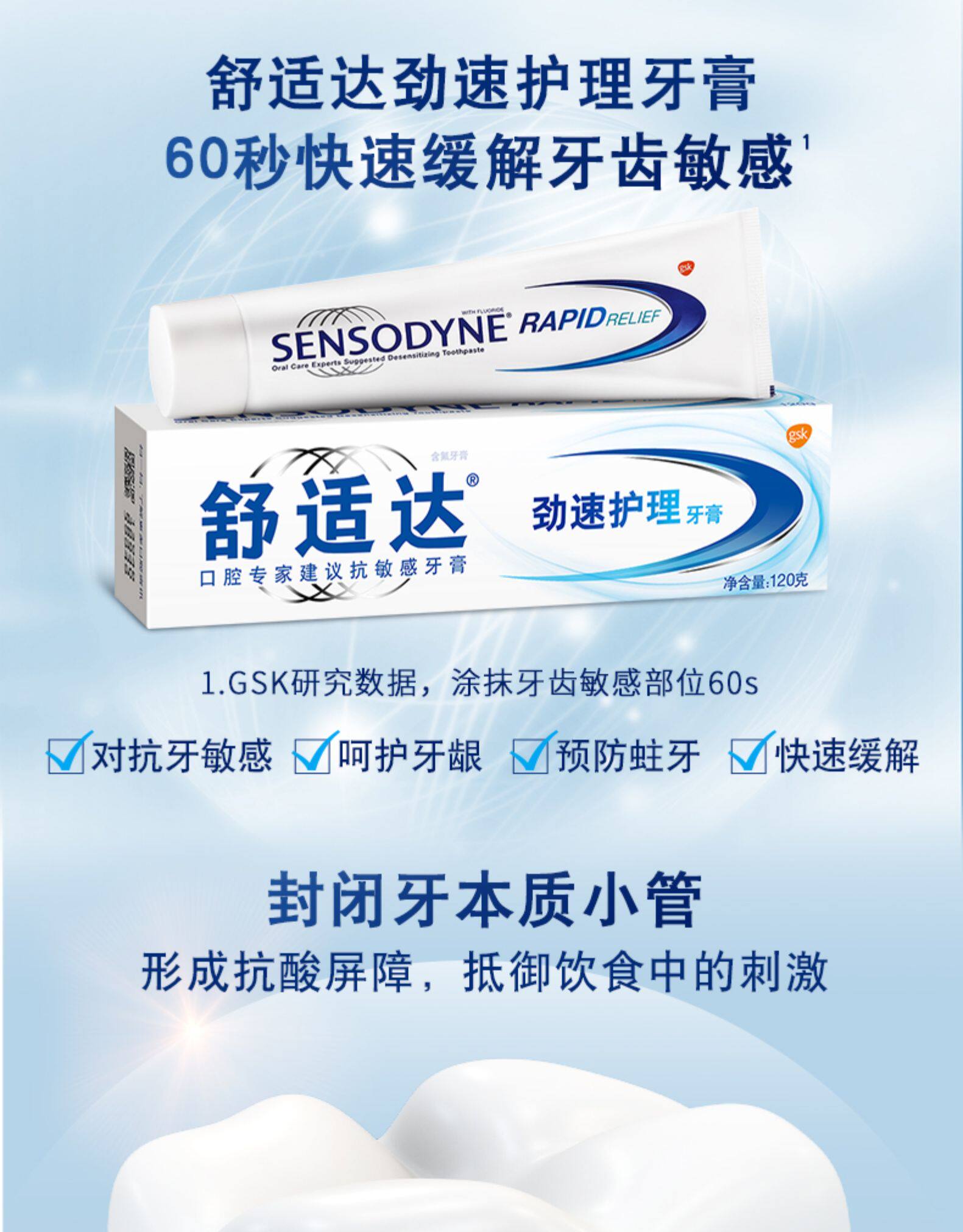 舒适达 Анти -чувствительность Скорость ухода за специализированным восстановлением зубной пасты горячая и горячая боль в боли.