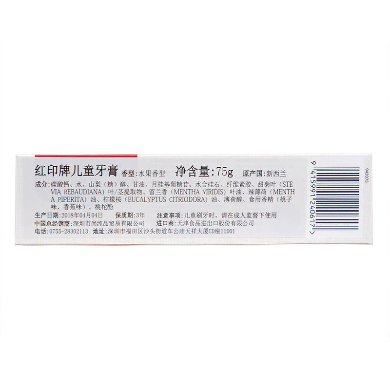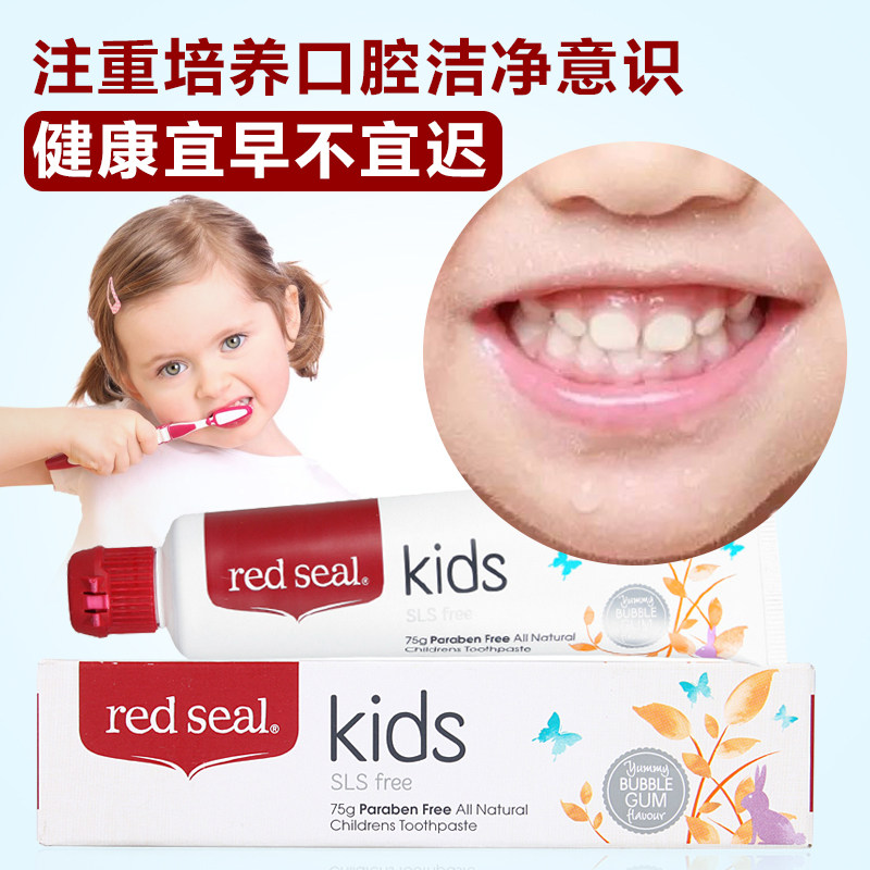 Красная/красная тюленя новозеландская детская зубная паста заботится о лиственном фториде, сладком, сладком, невисном, фруктовом аромате 75 г