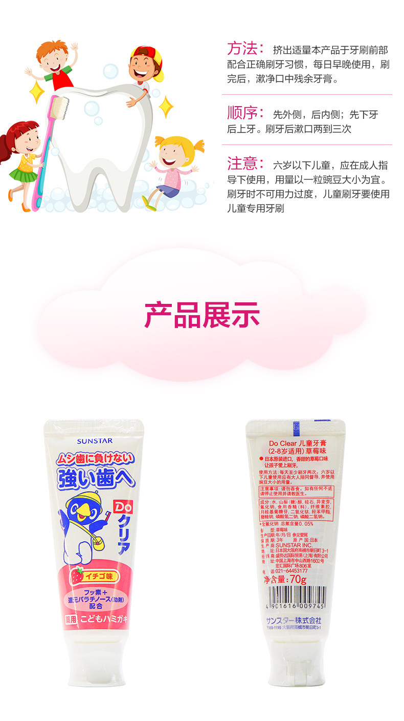 Ora2/皓乐齿 Сделайте четкую детскую зубную пасту (применимо к 2-8 годам) клубничный аромат 70 г/поддержка