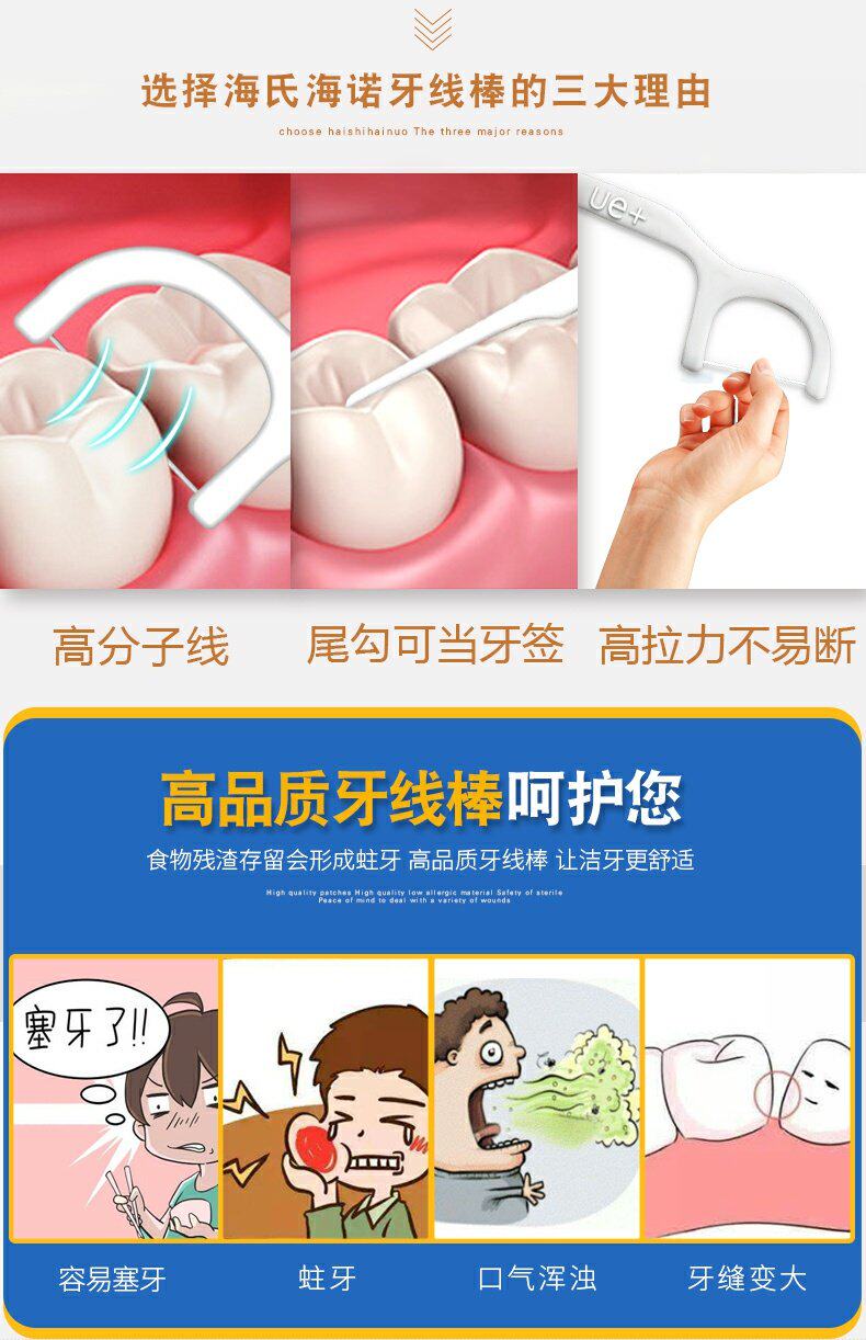 海氏海诺 Оральная гигиеническая портативная зубная нить для домашнего использования, 50 шт