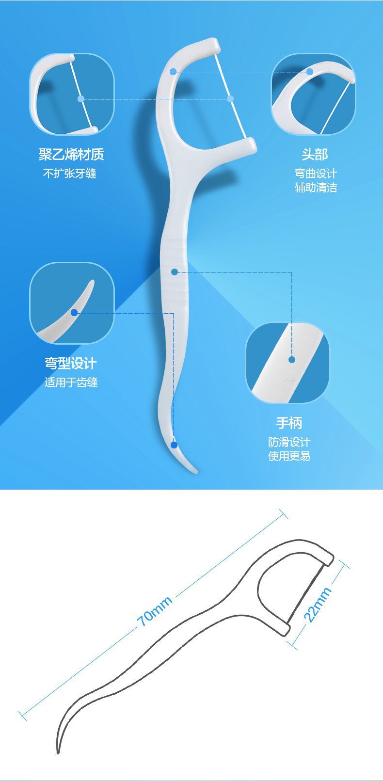 可孚 Стоматологический стержень лук -в форме отдельно упакованной портативной зубочистки детская чистящая чистка зубов.