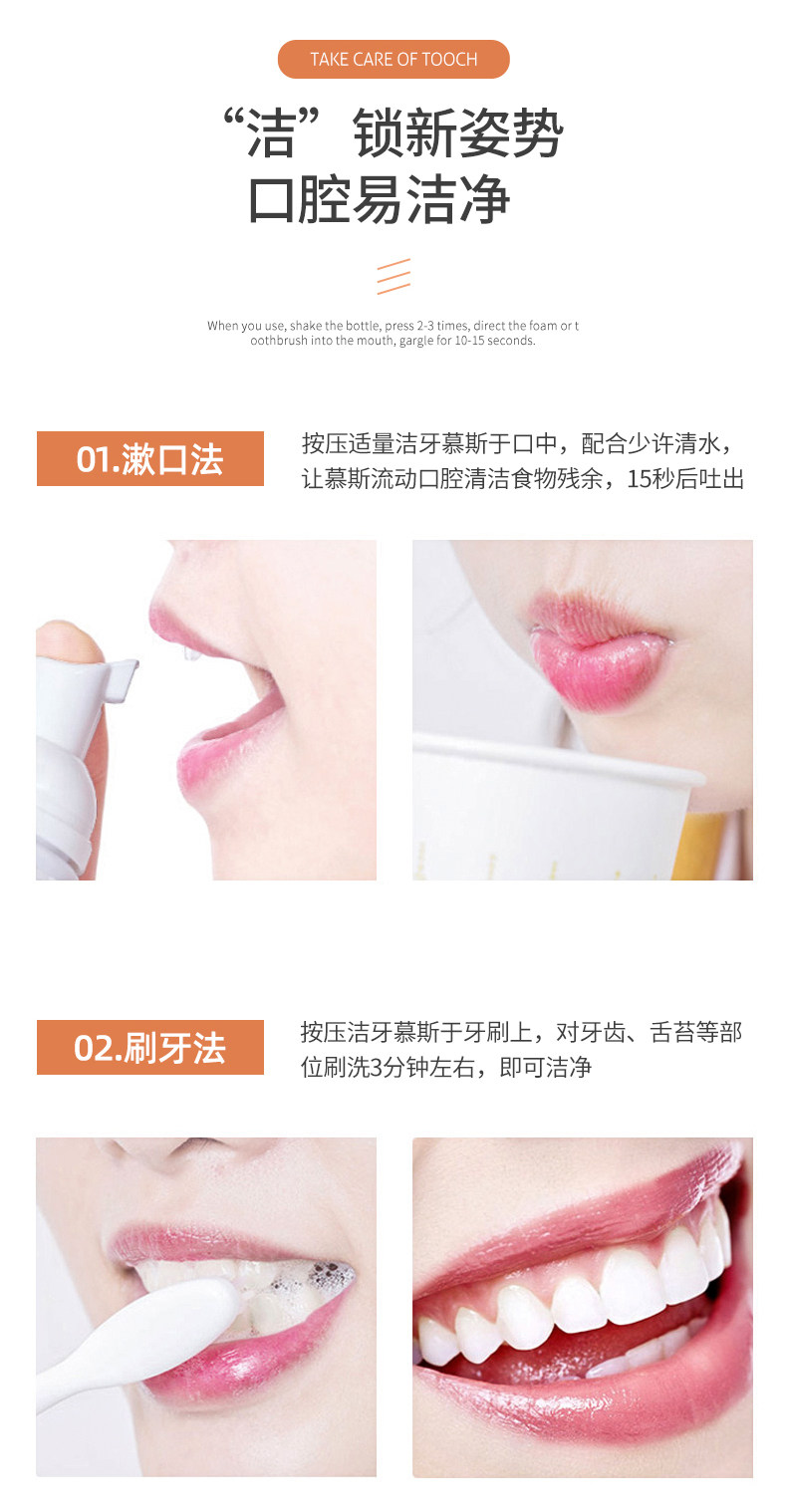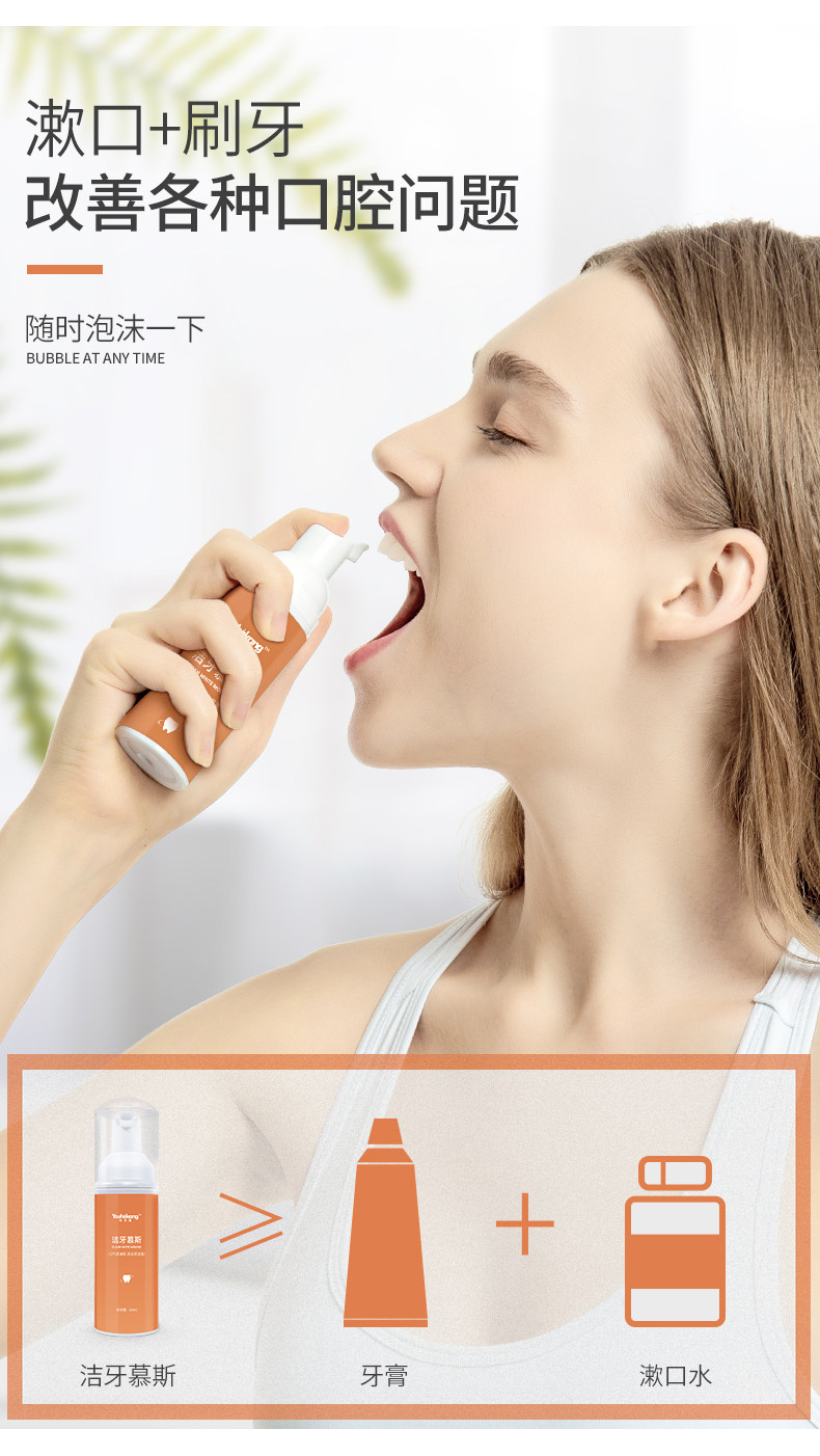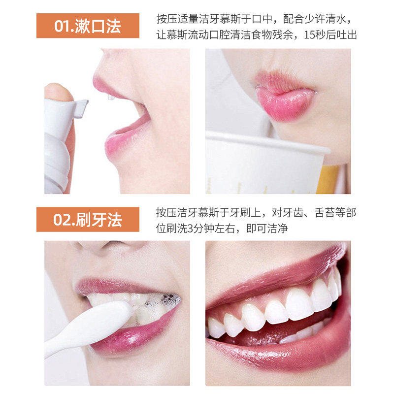 Мусс из пены, осветляющая зубная паста, оральный ополаскиватель для рта
