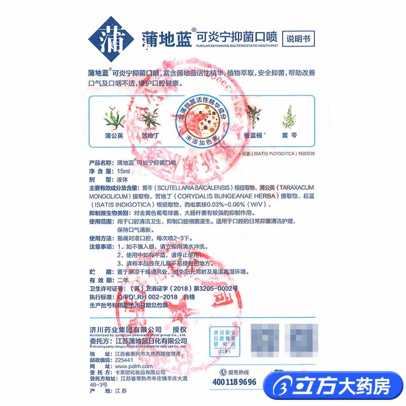 蒲地蓝 Keyan Ning Bacterial Period Выход 15 мл Свежий тон чистый устная санитарная сантехника слегка вонючая