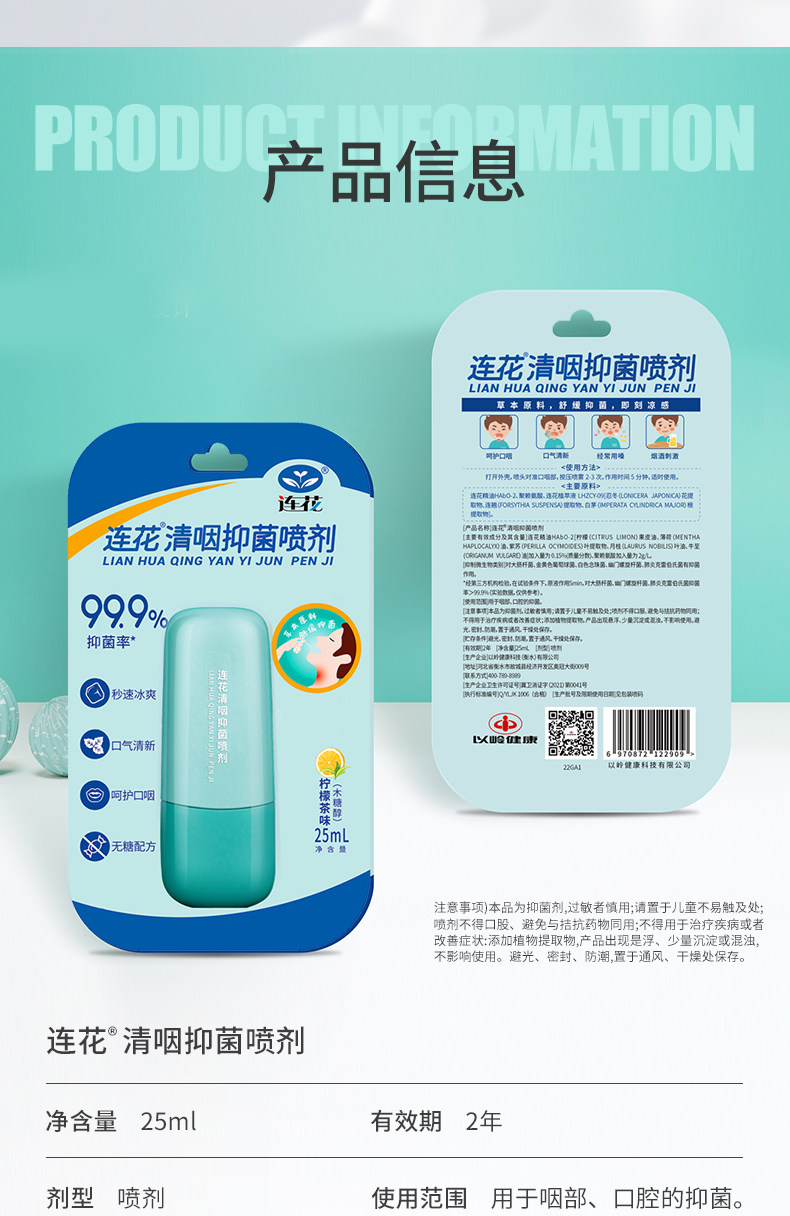 Ридж Лианхуа очищающий глоточный бактериостатический спрей для защиты рта успокаивающего горло и горло