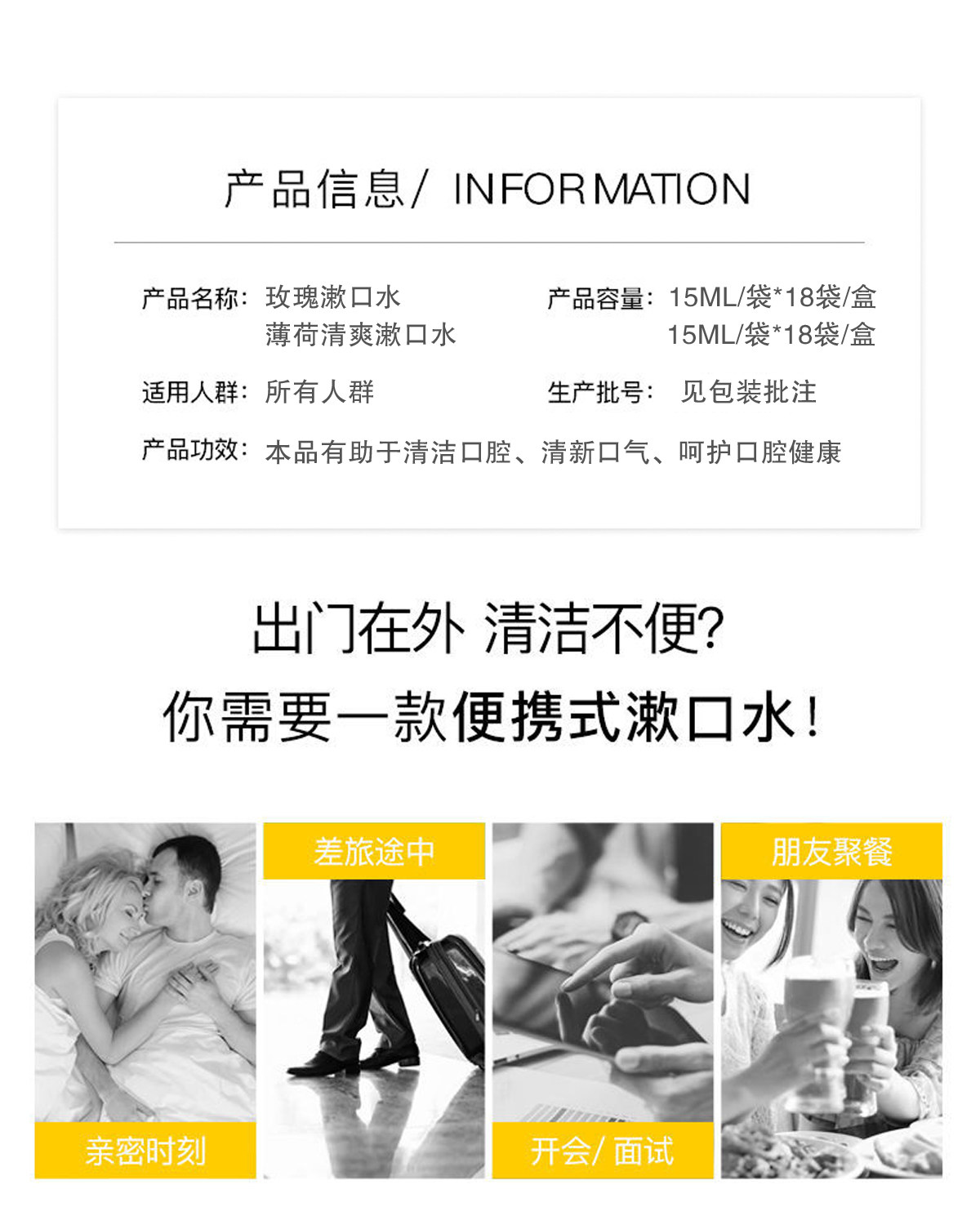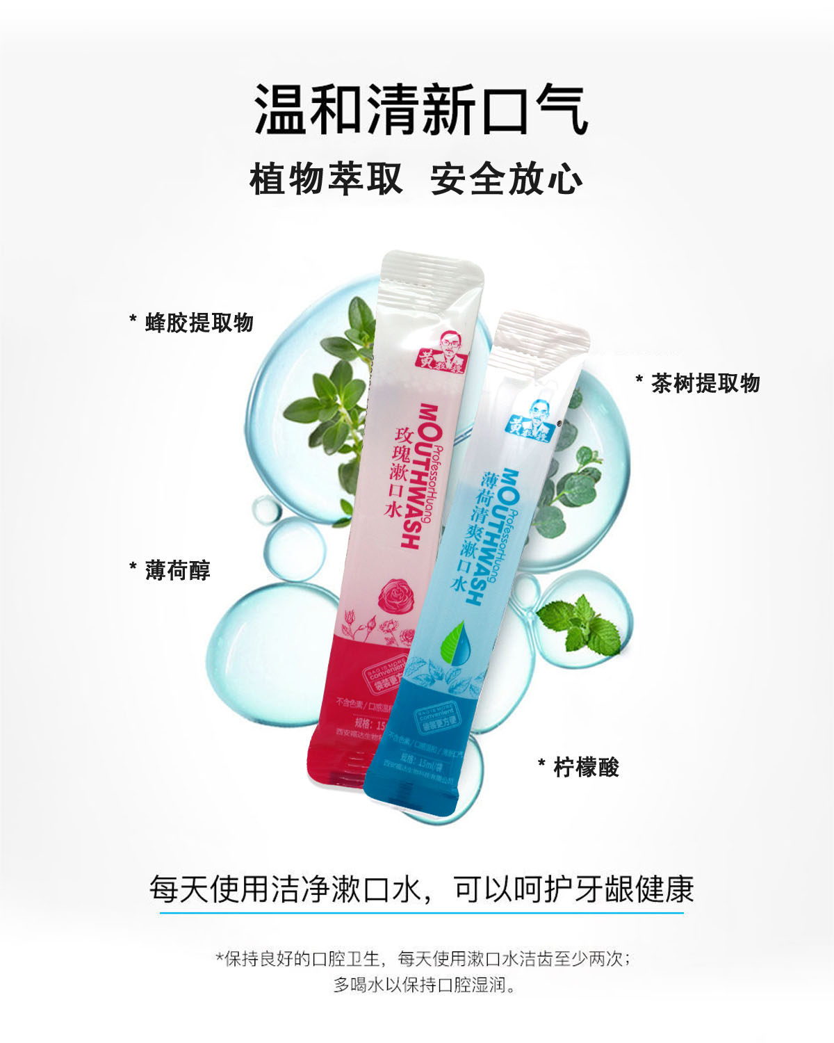 Мятный освежающий свежий ополаскиватель для рта, 15 мл