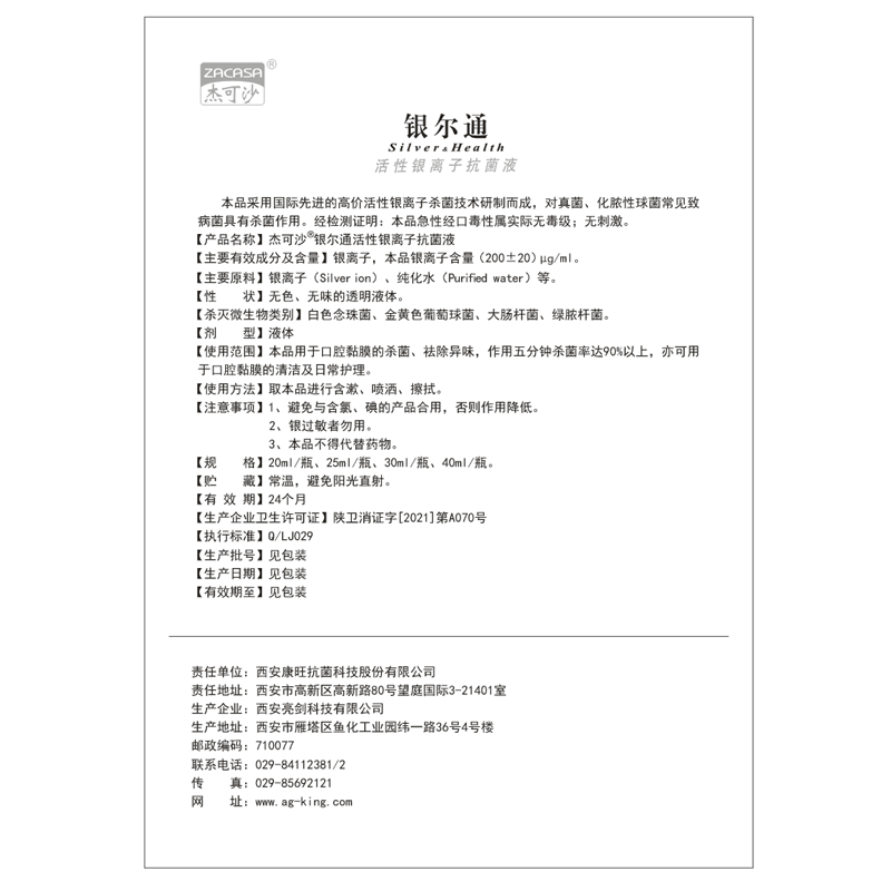 Jessoha Yinltong Активное ионы серебра антибактериальное раствор 40 мл Стерилизация слизистой оболочки полости рта