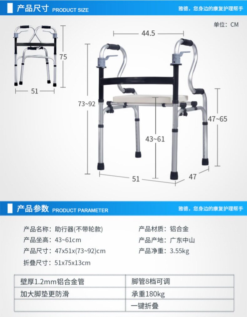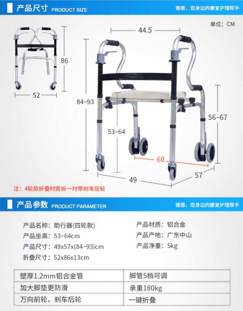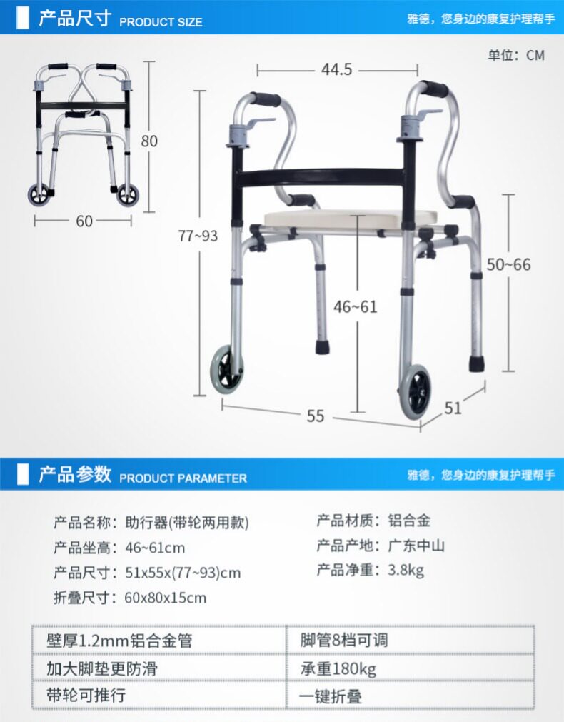 雅德 Вспомогательный пожилой пожилые шаги с колесами с ручным подпользом помощник