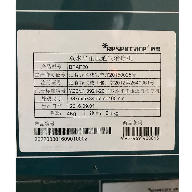 Мизусус -Вэлли BPAP 20 Двойной горизонтальный пользователь медицинский храп углекислый газ