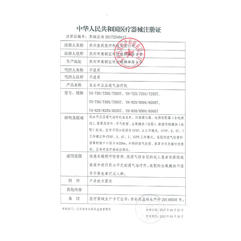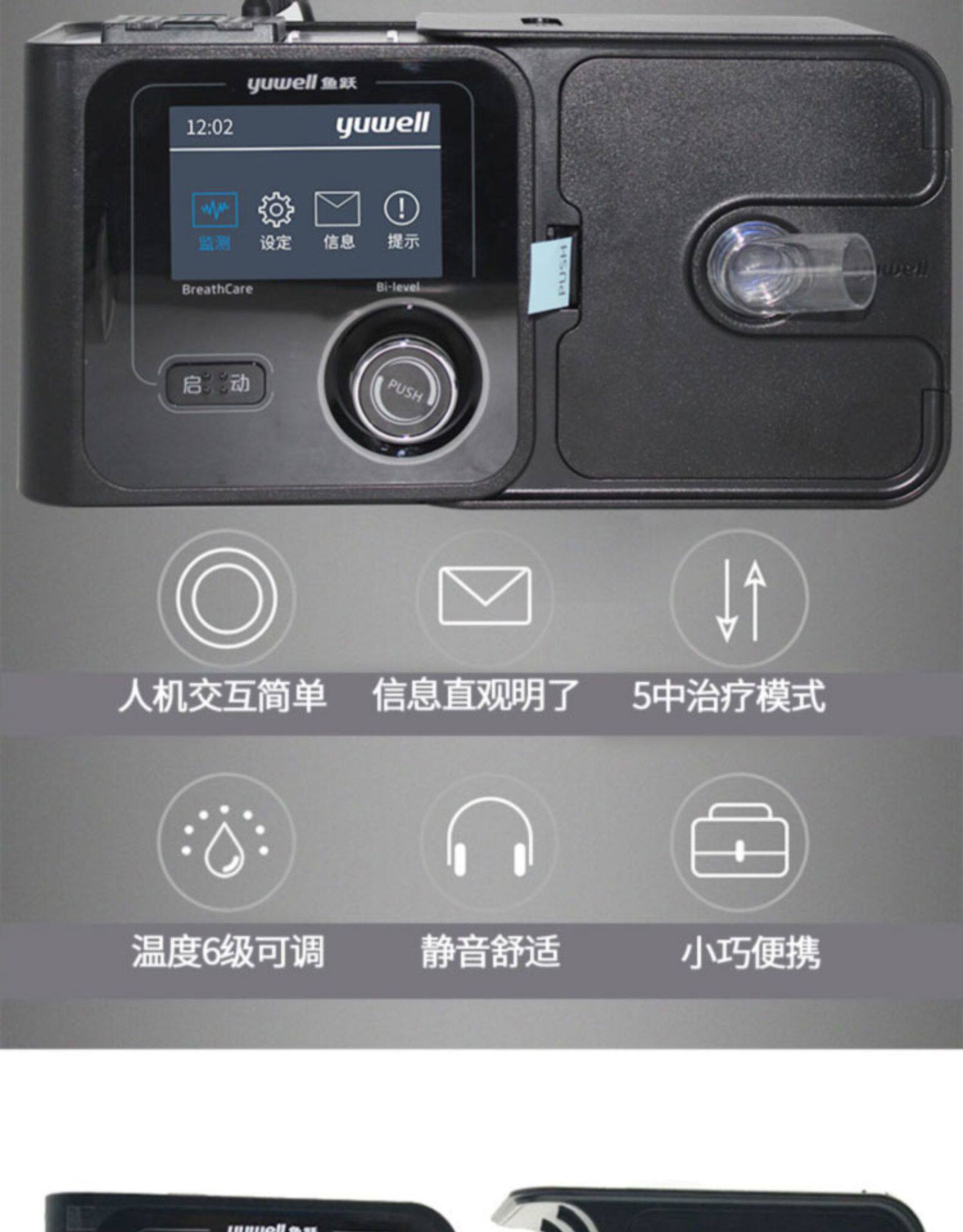 鱼跃 720 -й вентилятор медленно -блокированный легочный двойной горизонтальный дыхательный респираторный семейство пневмония